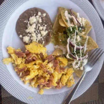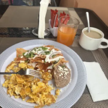 The breakfast was delicious, especially the view of the mountainside.