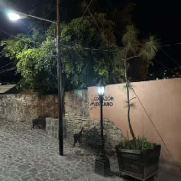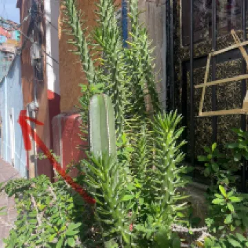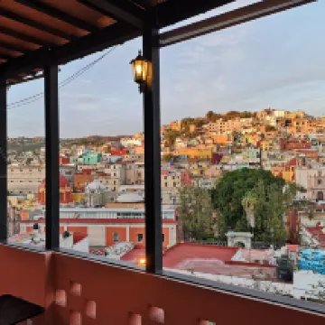 The B&B is located halfway up a mountain, with a twist and turn, making it a bit difficult to find. From the tree in the picture below, follow the arrowed path up the hill. After a few walks, you'll remember the way back to your room. The room is very small, and the Wi-Fi signal is very weak. However, the included breakfast is a great value for the price. The hotel's public areas are a must-see, especially the breakfast restaurant. From the window, you can see a large area of colorful houses on the opposite hill. I'm sure it would be stunning at night, but I missed it. There's a bench outside the front desk, perfect for taking photos.