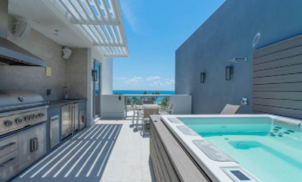 Our exclusive 5-story luxury condo in a 10-unit complex offers ocean views and is walking distance to the beach. Ideal for those seeking Hollywood glamour, experience a blend of luxury and fun, perfect for any lavish getaway. All the amenities are fully private for your enjoyment: