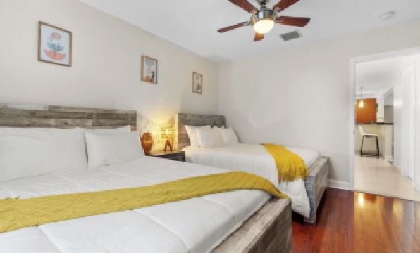 Welcome to your private getaway in the heart of Hollywood, Florida - just 0.5 miles from the beach (about a 10-minute walk) and only a 2-minute stroll to the bay and marina! This spacious, family-friendly home features modern interiors, a fully equipped kitchen, and a large private outdoor area with a pool. It’s the perfect escape for families, groups, or business travelers seeking a relaxing stay just minutes from the beach and downtown Hollywood.