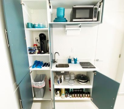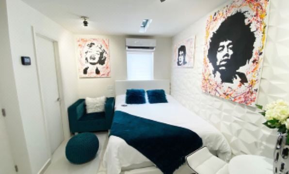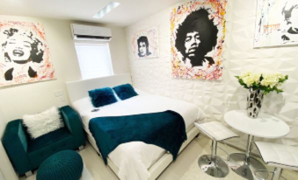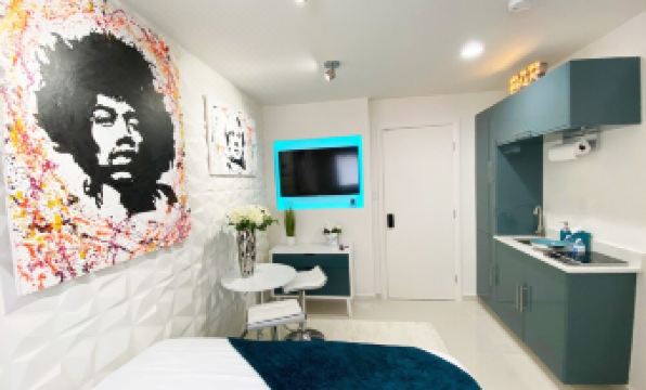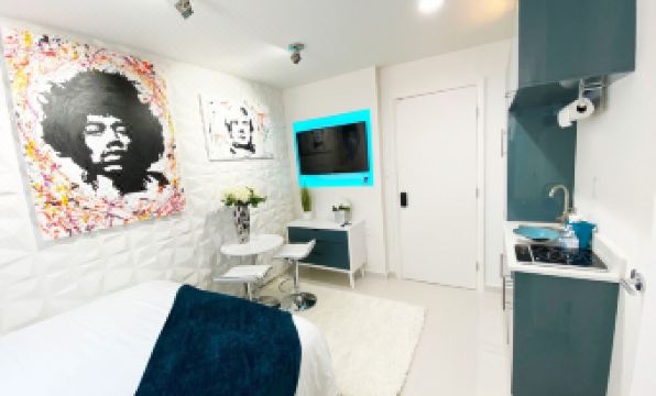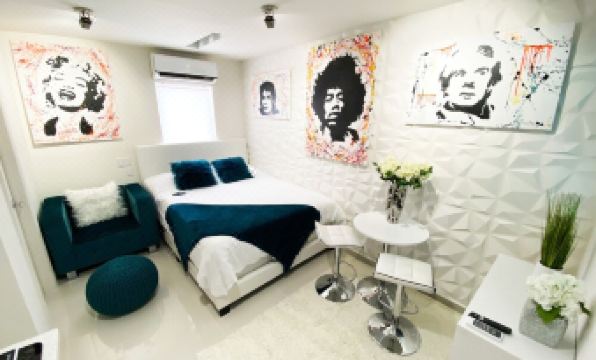 Small studio apartment, these units were designed by a luxury interior designer, all the art is custom and one of a kind.