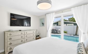 The perfect choice if you love the beach, private heated pool and drive an EV. Walk to the beach, dining, and even to have craft cocktails located in a quiet, residential neighborhood.