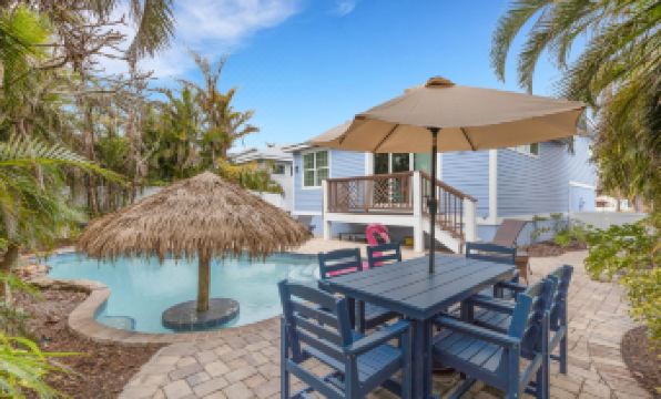 Enjoy a relaxing day in the private luxurious backyard, where you can dip in the pool, sit under the swim-up tiki table, or bask in the sun on one of the loungers. There is also a gas grill for preparing your favorites and freshly caught Anna Maria Island seafood. Manatee County Beach is just a few minutes away, where the gulf waters are warm, and the floury sands cover your feet. Afterward, head to any local restaurants for delicious treats and local favorites, or the free trolley to the famous Pine Ave and check out the fantastic boutiques! Anna Maria Island has many guided tours, golf courses and boat charters to make memories together with your friends and family. Enjoy an eco-tour where you can kayak or paddleboard the bay and the calm ocean, where you might even encounter some wildlife! Make your Anna Maria Island dream vacation come true at the Blue Martini.