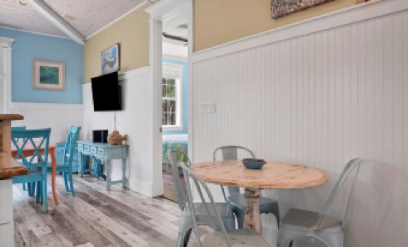 On the front deck is seating that is perfect for enjoying your morning coffee and energizing for your Anna Maria Island adventure-filled days and sipping your favorite tropical drinks in the evening.