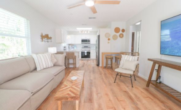 Modern & comfortable 2-bedroom, 2-bathroom stay is a short couple minute walk to the white sand beach of Anna Maria Island. The fully equipped kitchen has modern appliances, and the open layout provides plenty of space to relax. Step outside onto private outdoor space to enjoy a morning coffee, sit and relax, or grill! Newly outfitted for the 2025 season, with brand-new furnishings, linens, and everything you need for a comfortable stay.