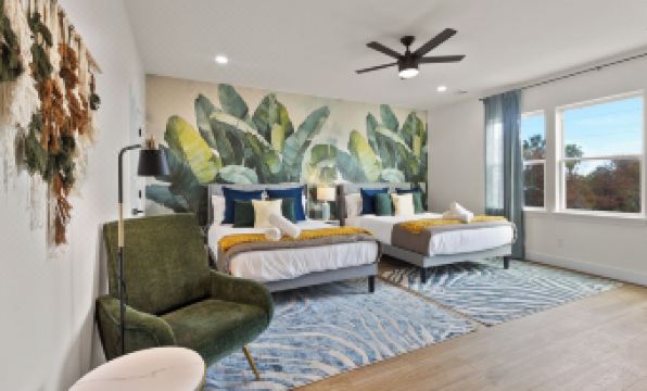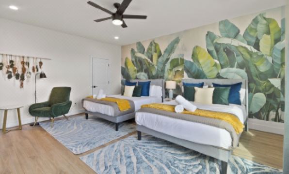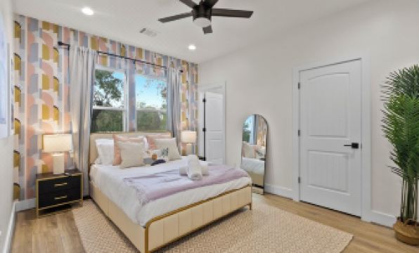 This stylish and modern townhome is designed for both fun and relaxation. Enjoy friendly competition in the vibrant game room, then head up to the private rooftop patio to unwind and take in stunning views of the Texas skyline.