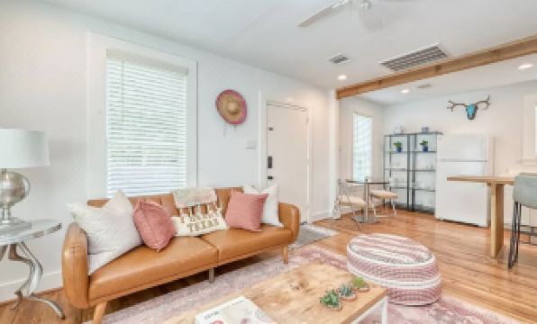 This newly renovated, ultra-chic garage apartment is centrally located in one of Houston's most up-and-coming neighborhoods, Montrose/Mid-town, which boasts a wide array of cafes, restaurants, shops, and bars all walking distance! With a lg. living room with a sleeper sofa and large smart TV, an open concept kitchen with bar seating and bistro table, with a nice separate large bedroom with luxury-grade king mattress / linens and a posh on-suite bathroom.