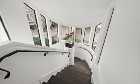 ✔ Grand Entrance: Step into a stunning two-story foyer with a gracefully curved staircase, bathed in natural light from expansive windows.