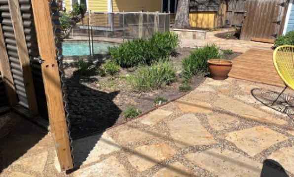The pool and backyard are shared with the guests of the Sunshine Bungalow and guests of the Tree Top Loft.