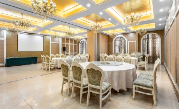 ?The Manhattan International Hotel Huaibei (Huaibei Manhadun Guoji Jiudian) is a four-star standard hotel located at crossroads of Nanhu Road and Renmin Road, about 50 meters from Kouzi International Hotel. The dining venue can hold up to 800 guests at the same time and offers both Western and Chinese cuisine as the hotel name may suggest.Business guests may take advantage of meeting rooms of various sizes and a function hall which both come with provided Wi-Fi Internet access to ease the process of events and business proceedings.