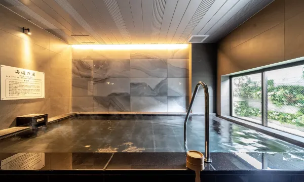 The onsen (hot spring bath) is also very clean and comfortable, though a bit small. It might feel cramped with a large group, but the room TV displays the number of people allowed in the onsen, allowing you to schedule usage.