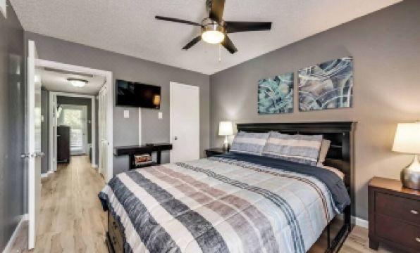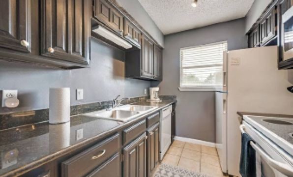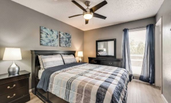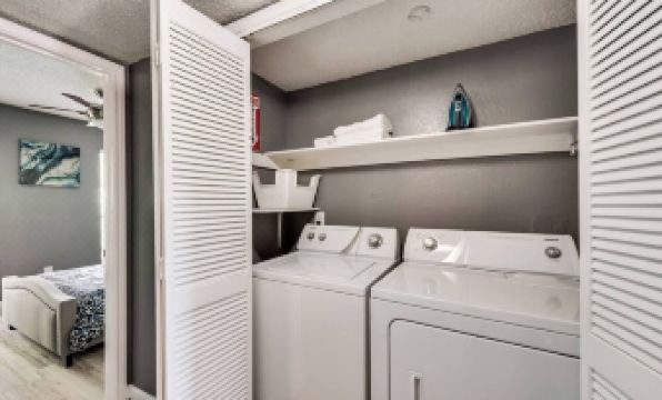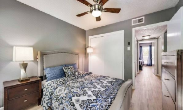 Tranquil 2BD/2BA 2nd floor condo. Featuring a queen bed & a full bed. Enjoy a fully-equipped kitchen with full-sized appliances, an in-unit washer/dryer, & access to a pool. Decorated in serene grays with vibrant accents, the modern & contemporary furniture creates a perfect haven for relaxation after a busy day. Conveniently located near HWY 183, HWY 161, and DFW Airport. Review "Other Things to Note" for important details on pet policies, parking, keys/FOBs, required ID, utility cap, etc.