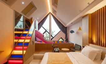 很全面的親子遊玩民宿,房間有意思,邊上就是大遊樂場。露天泳池是孩子們的最愛。晚上的納涼夜生活好會玩。