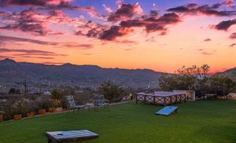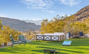 Show your competitive side with a round of corn hole or demonstrate your culinary expertise while grilling up some dinner at the BBQ. When the sun goes down on this side of town, the fun really begins. Spot your sign in the vast skies above from the outdoor King sized bed or cozy up by the fire-pit in our large 8-person outdoor lounge seating while you watch the moon rise behind the rock mountains.