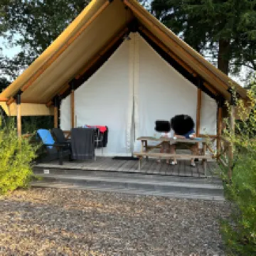 Had a great holiday in a glamping tent. The tent was clean on arrival and equipped with many amenities. For example, air conditioning. You can hear the highway in the distance in bed, you have to be able to handle that. No mosquitoes at all. Fortunately, there is a lot to do in the park. Nice mini disco and show in the evening. Many play areas for daughter. Parents can sit on the terrace. The steakhouse is also highly recommended! Really great food for a good price. There is also an Albert Heijn within 5 minutes drive. Made a lot of use of the outdoor swimming pool. Inside we were aware that it was closed, which was no problem at all. We had a great time and will definitely come back.