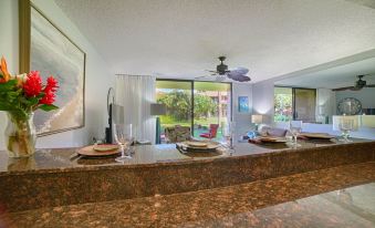 FREE AC in both LR & BR! King bed (new purple mattress 7/23) + queen sleeper sofa (4 pp max.). Remodeled kitchen & bath. New smart TVs: 55" in LR & 50" in BR. Laundry in unit. Free parking. Follow us on IG @luanakaimaui for specials!