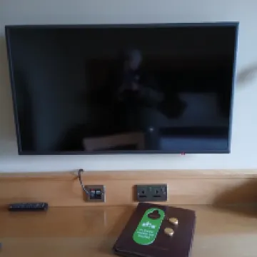 I seriously question the scoring and reviews across the web for this pit of a place. This was marketed as "luxury " and for £127 for a night, that's what I expected. You won't be made aware that the entire back of the place is a caravan site. Those folks and anyone else, can use the pool. It's a tiny pool. So it's heaving. It's also dirty and run down like the rest of the property. No separate space for kids/adults to swim. I could have made my peace with that, BUT everything else was dirty, dated and with a distinct institutional feel, think ... Old folks home. It's shabby and depressing, and our "executive luxury suite" was like a hostel. Filthy, not updated since the 80s. Dangerous wiring in lamps and TV. See pics. Tv didn't even work. Layers of dirt so heavy must be DECADES old. Needs a serious deep clean. Bed so old you can feel every lump and spring. Lumps gouged out the pleather (yes, pleather!?! ) headboard. Stains on old, brown institutional carpet. Bathroom so dirty we didn't even wash. Ancient, dirty sofa. Beware! This thing is used as extra bed if family are staying!! Breakfast inedible. Sausage pink inside. Staff try, but are tired and stressed. Which brings me to the "manager" Wow. Openly hostile to paying guests. Apparently has no responsibility to the guests because "the directors can do what they want. If you don't like it go elsewhere " don't worry...we will! Complained on check out. Was told they get vast volumes of complaints, and it will be ignored. I get the impression the owners think the view is enough to excuse poor hygiene and Ancient decor. It's not. I don't know how they can take money under this misleading advertising. Be aware, the beach is not accessible by crossing the road. There is a very long concrete block and railway in between. Arcade depressing and machines broken. Joyless, archaic, not even budget quality, Council feel, dump of a place. Please don't get taken for a mug like we did.