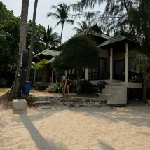 We rented a bungalow through ***********, for 4, right on the water. The location was great, that's for sure. The beach was pretty and the sunset was amazing. However, 500 euros for 3 nights without breakfast is really, really too expensive for the service and for Thailand. The bungalow is aging, the towels are gray and stained, and there are lots of mosquitoes in the evening. A mid-length curtain divides the room in two. It's impossible to eat outside on the small terrace, unless you slather yourself with repellent.