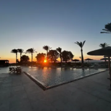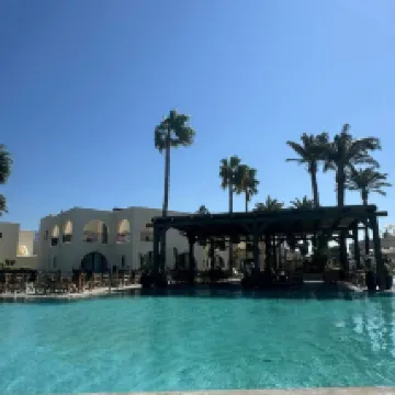 While most of the staff were lovely and smiley, the reception team was disappointing (except the lady who did our check in efficiently on the evening we arrived and explained everything). On several occasions when I asked questions, they seemed abrupt and in a hurry, even when no one else was waiting. The biggest drawback was the food. It really needs improvement and is the main reason for the lower rating. Most meats were dry, with little variety. Even simple dishes like Greek salad were below standard. The buffet was very pork-heavy, which made it difficult for us on some days since we don’t usually eat pork. Desserts were the worst part, mostly inedible, just cream and jelly-like options. The wine was also very low quality.