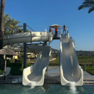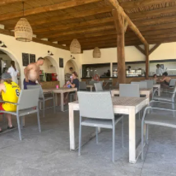 We stayed here as a family during the peak month of Aug. We booked through Easyjet last year and had some trepidation as most of the photos seemed AI generated, and a general lack of information was available. I can report that we were pleasantly surprised and had an excellent time with helpful and accommodating staff on site. We were housed in the main hotel on the ground floor near to the restaurant and top pool. The room was fairly soacious consisting of two bedrooms and a bathroom. There was a free to use safe, fridge with bottled water, hairdryer, and toilletries provided. Our room wasn't a refurbished room as you will see in some photos, including the facebook group, but it was generally in good order. The only detractors were an ant problem which seemed to plauge the ground floor rooms of the hotel and a shower that seemed to drench the bathroom floor, luckily there is a drain in the floor to remove any excess water. The cleaners were prompt and efficient in the morning at 9 am sharp, so if you like a lie in make sure you leave your "do not disturb" card out. The only other thing to note was our hotel room was left open after the cleaners had visited on three occasions, this was possibly an iffy door lock but the patio door was also left open on one occasion. This could have been a security issue, but fortunately, anything of value was in the safe. Overall we were very happy with the room. The all-inclusive meals are provided at the main restaurant consisting of a small indoor seating area and a larger outdoor area. Most of the food is located indoors, including a fresh pizza section with a BBQ section outdoors. Food is varied and good quality with some of the salad items grown fresh in the grounds of the hotel. There is also an a la carte restaurant located down by the lower pool. You book your table the morning before and ques quickly, so make sure your prompt. Again the food was excellant at this restaurant with a number of choices on the menu to suit all pallates. Overall, there are no complaints from us on the food front. Drinks, however, are more of a mixed bag. A decent selection of local wines are available by the bottle / half bottle when the restaurant is open and by far my personal favourite. Beer is located from a self-service tap in the restaurant and bars located near both pools. The taps were inconsistsnt to say the least, sometimes they were perfect but more often they were either flat, over foamy or trickled out creting a fustrating experience, when it did work the Zorbas bear was quite good by all inclusive standards. Spirits were branded from what i could tell with sizeable portions, but cocktails were disappointing. There was an extensive menu with some glaring omissions such as 'sex on the beach'. However, the accommodating bar staff were more than happy to make on request. The problem is that all the cocktails seemed to miss the mark with the fruit juices seemingly watery, resulting in lacklustre cocktails lacking