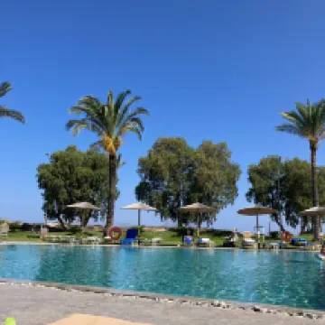 Had such an amazing stay-the beach was gorgeous and the pools were lovely. The food was okay although we just stuck to eating cheese and chips lol. The room however, wasn’t kept the cleanest after housekeeping had been in and we had an issue with ants in the bed but when you’ve had a drink you don’t mind too much! The best part of our stay was the bar staff-so friendly, welcoming and went above and beyond for us-especially Pavlos, Andreas and monolis (not 100% sure how to spell them haha) Enjoyed it so much we cried when we left x