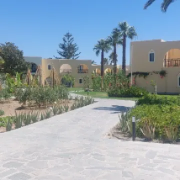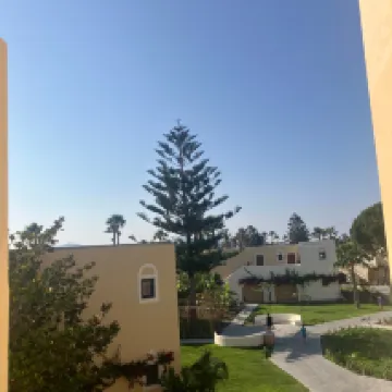 I visited this hotel in August 2025 with my husband and our two sons aged 14 and 9. We arrived just after midnight and everything was very quiet. We were shown to our room, 317 and immediately got settled. We were given some sandwiches, fruit, water and juice. I can honestly say this was absolutely the right hotel for us. The room was perfect, our boys shared the twin room which had sliding doors, meaning we were altogether, but we had our own space. Large patio doors from our double room out onto a patio area on the ground floor. We spent our days split between the pool with the two slides and the beautiful sandy beach (no water shoes needed, there aren't too many pebbles in the water). Our boys loved the slides, I'd wanted something like this, but not a great big water park. Sun beds are hard to come by, which meant we did reserve them with our towels in the morning, but it meant I could wander down and read my book alone on the bed for 20 minutes before we went off to breakfast, then return shortly after. We didn't join in many activities but my boys did play the organised football during the day on the grass by the pool, then again in the evenings at 8pm on the football pitch at the front of the hotel. We got the bus into Kos town which was straight forwards and easy to find, the reception showed us the timetable and explained where the bus stop was. The food is a sticking point... I loved the selection of salads and fruit, the yoghurt and tahini in the mornings. The pool bar offers lunch, but often it was warm rather than hot, similar to many of the dinner items in the evening, I feel maybe quantity (lots of options) over quality was the reason. My sons both found things they would eat and I must give the hotel a huge shout out for helping my youngest son find things that he could eat that didn't contain wheat. We just asked to be shown gluten free items and they went out of their way to accommodate that. I would definitely recommend the hotel, no high rise buildings, no rowdy bars, beautiful grounds and all very clean. I would love to go back, but with the prices having increased by £1000 for next summer holidays we might struggle, hopefully one day!