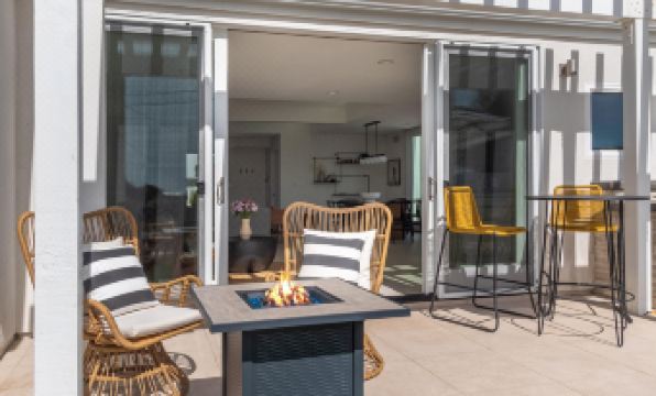 HIGHLIGHTS: -Central AC system-Ocean Views -Walk to Beach and Town-Backyard with Pool/Spa, Grill, Fire Pit, Lounge Chairs, Bar Top-Sonos Sound System Throughout Home-Custom Luxury Home-King Ensuite-Washer/Dyer-Garage Parking-Beach Gear ProvidedDESCRIPTION:Welcome to our 3-bedroom, 2-bathroom modern coastal luxury home in the highly sought-after Bird Rock neighborhood of La Jolla, San Diego. Our prime location just off downtown Bird Rock's main street makes it the perfect retreat for your next vacation.Step inside our beautifully designed home and be awed by the chic and professional decor, setting the tone for the best in modern coastal living. A short stroll from our lovely neighborhood to the cliffside over the Pacific Ocean, you'll quickly understand why our location is one of the best in San Diego.The highlight of our home is our one-of-a-kind backyard, featuring a fire pit, spa, pool, grill, sun loungers, and, most importantly, the sights and sounds of the crystal blue waters of the Pacific Ocean. Unwind after a day spent surfing or exploring nearby restaurants, experiencing the area's beautiful coastline from multiple perches in our spectacular backyard. With a new private pool and a lovely furnished patio featuring a new countertop grill, this elegant setting is perfect for relaxation. Settle in the backyard's loungers with tranquil palm trees and water views as your backdrop, and gathering around the fire pit in the evenings is the perfect way to recap the night.Inside, our beautifully furnished home offers plenty of space to relax and unwind. Share meals at the kitchen bar or dining table, catch up on your latest read in the sitting area, or stretch out for a movie night with your crew on the smart TV in the living area. Contemporary decor adds charm throughout the space while central air-conditioning provides comfort.Don't miss out on this one-of-a-kind experience in Bird Rock. Book our stunning home today and start planning your dream San Diego vacation.SUITABILITY-25+ age limit or family groups-Exterior security camera and decibel meters-ID and credit card verification required-No Smoking anywhere on property, including exterior areas-Due to home owner allergies, no pets-Local noise ordinance requires quiet hours between 10 PM - 7 AM. Strictly enforced-No over occupancy at any point during stay, all guests must be pre approved by CoastSLEEPING ACCOMMODATIONS (Sleeps 8) (6 adults max)-1 king (sleeps 2)-1 king (sleeps 2)-2 bunk beds (2 double, 2 twin) in 3rd bedroomTHINGS TO KNOW-Guests must sign a separate e-sign agreement with important terms and conditions and ID and credit card verification is required to complete the booking process.-The pool vendor comes every Thursday to service and clean the pool, they will need access to the backyard area of the home only.-The landscaper comes every Wednesday to cut the grass and tend to the plants around the home. They will only need access to the exterior areas of the home only.-Beach gear provided (beach chairs, umbrella, wagon, beach towels).-Top Bunk Beds are meant for children only, please no adults.-Pool/spa equipment is to be operated by management only, please do not tamper with the equipment itself. Please call first if you have any questions.-The pool cover is available as needed for child safety. Please call management for assistance. -48 hour notification is required in order to heat the pool. A fee of USD $100 per day must be paid prior to check-in. Please note that a 3 night minimum is required for pool heating. Guests may contact the property manager after booking to purchase pool heat for your stay. Thank you!-This home has a Sonos sound system connected to all rooms as well as a portable device, please connect via WIFI/Bluetooth for your enjoyment -There is an active Ring surveillance camera location on the front door pointed outwards.-In accordance with the local Short Term Rental Ordinance, this home is equipped with a device that monitors noise levels (but does not record sound). It is located in the main living areaATTENTIONThis home is located in a noise sensitive neighborhood and is only suitable for quieter groups..