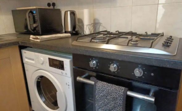 Our flat offers robust Wi-Fi, in-unit laundry, and Netflix, ensuring a comfortable and enjoyable stay. Whether you're visiting for business or leisure, you'll find our home crafted for comfort, making your stay cozy and fun. The flat can sleep up to 5 guests, with two in each bedroom and a comfortable sofa bed in the living room.