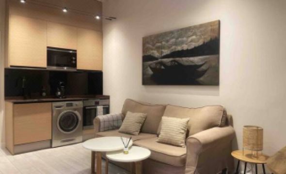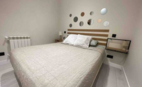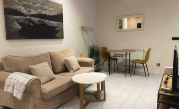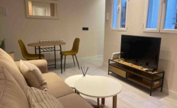The apartment is located in the La Latina neighborhood. It has been recently renovated and restored. The decor is clean, modern, fresh, and relaxing. The open kitchen is fully equipped with a washing machine, dishwasher, refrigerator, ceramic hob, oven, and microwave. The living room and dining room are spacious and bright, with enough seating for everyone. The apartment has two bedrooms and one modern bathroom complete with a shower and screen. The exterior windows are new. The living room has an air conditioning unit, which cools both bedrooms, creating a cozy atmosphere, as it is an interior apartment. A radiator is also provided.