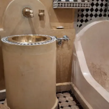 The suite is spacious and decorated with exquisite taste, blending traditional craftsmanship (tadelakt, zellige tiles) with modern comforts. We particularly appreciated the private sitting area, ideal for relaxing after a day of walking. The bedding is of exceptional quality (memory foam mattress), guaranteeing very peaceful nights despite the proximity to Jemaa el-Fna square. The bathroom is large and the toiletries are of high quality. We had an absolutely wonderful stay at Riad Casa Lalla.