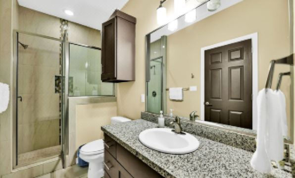 The bedrooms feature large dressers for your clothing, as well as Serta Euro-Plush queen beds. Each have 58" Samsung 4k Smart TV's. Each bedroom has its own private bathroom and shower, making it perfect setup for two groups of travelers. The larger of the two bedrooms features it's own private balcony as well. There are blinds and/or curtains on all windows for extra privacy.