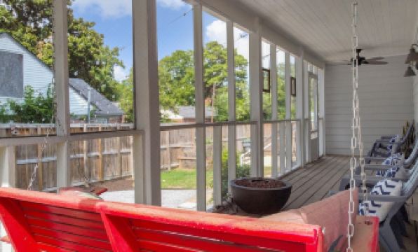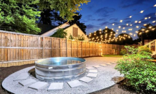 This home sits on a large, private lot that is fully fenced - perfect for you to bring your pets! On the back side of the house is where you will find all of the outdoor amenities. You can sit around the fire pit in the screened in porch, swing on the porch bench, or relax in the brand new cowboy tub (small, above ground pool). In the evening, you can turn the exterior string lights on to truly relax in this wonderful, private space!