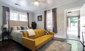 This side of the duplex has 2 spacious & inviting bedrooms, each furnished with a plush queen-size bed. Wake up refreshed for another day of adventures. One of the bedrooms has a desk with accessible outlets and wifi for those who need a workspace. The bathroom has a bath/shower combo with a small vanity. Storage space is available for your toiletries. The living room is equipped with a smart TV with Youtube TV and Netflix provided. There is also a queen-sized pull-out sofa bed for an extra two extra guests. The newly renovated kitchen has all new appliances and kitchenware. You might just feel inspired to cook in this cute kitchen. Please feel free to use the washer and dryer located in the hallway. Enjoy a glass of wine or sweet tea in the front porch sitting area.About pets:Pets allowed: dogs and cats less than 20 lbs per pet (limit one pet total).About checkOut:Check out before 11:00 AM.About children:Children allowed: ages 0-17.About checkIn:Check in after 4:00 PM.About smoking:Smoking is not permitted.About minBookingAge:Minimum age to rent: 21.About events:No events allowed.