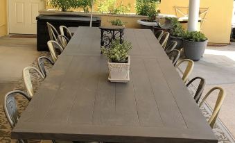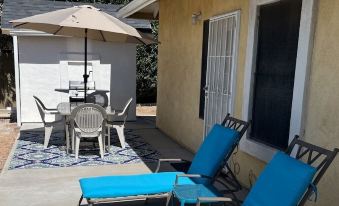 This spacious 1-bedroom guest house is nestled in a safe family neighborhood of central Mesa and offers over 900 sq. feet of elbow room. The cozy queen-bed has a new pillow-top mattress, and luxury linens. There is enough closet / drawer space to accommodate your entire wardrobe and shoe-collection! The sectional sofa in the living room comes with a pull-out full-size bed and additional mattress topper. The nearby freeway system offers easy access to anywhere you need to go. Walk to parks, grocery, pharmacy, bike or hike nearby trails. Comes with a smart TV along with internet, wi-fi access. The full kitchen is equipped with all you need for quick meals or large dinners. The bath has a large shower, with a private entry from the bedroom. The open floor plan promotes comfortable interaction with guests. There is another private bedroom with a queen bed available along with a private bathroom for an extra fee. Easy parking with a private combination entrance, and security screen doors. The fenced back yard comes with lots of patio space on a secluded lot, with a propane grill, patio furniture, and private pool. The pool is heated for year-round swimming! There is also extra RV parking available. Sorry but no cats allowed.About pets:No pets allowed.About checkOut:Check out before 11:00 AM.About children:Children allowed: ages 0-17.About checkIn:Check in after 3:00 PM.About smoking:Smoking allowed: in designated areas.About minBookingAge:Minimum age to rent: 21.About events:No events allowed.