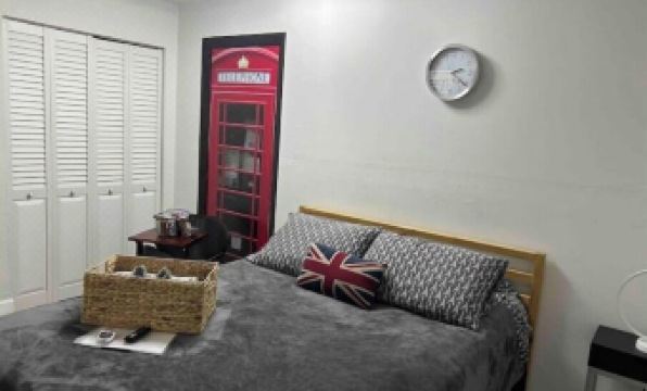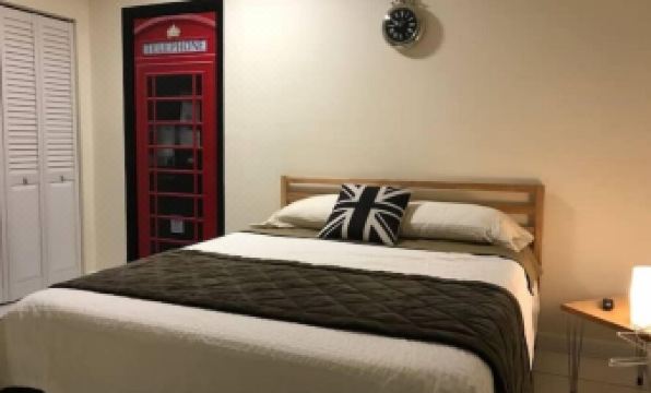 A terrific designer studio with a cool British theme, large mini fridge, brand new memory foam mattress, a Smart TV with Netflix and Hulu. With a completely updated and redesigned modern bathroom massaging shower with tub. Ice cold air conditioning and free parking.