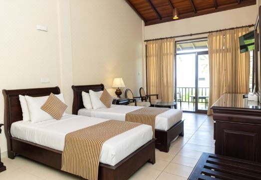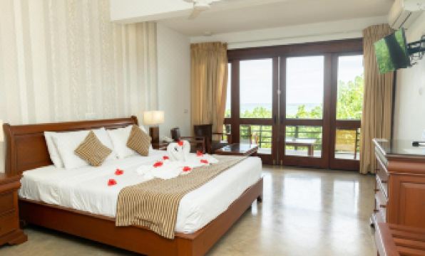 I thought that this hotel was a 3* and not 4*, I had intended saying in this review that it barely lives up to 3 star standard, but could easily change that to 4 star with effort. That effort would need to be made in cleanliness, friendliness and courtesy. However, after spending a good fifteen minutes explaining to an indifferent manager about 7 faults in our room and with service and he either missing the point or just not even a tiny bit interested, I can't see them ever changing from 3 star. I don't mind that the furnishings look old and worn, or the towels not brilliant white, as long as they are clean, but with the exception of the bed and bathroom, nothing in the room appeared to have been properly cleaned for at least 12 months. The fridge was filthy, with broken parts of the freezer section hanging down. I had to clean the kettle before use. This hotel was booked as part of a tour, so I don't know the price breakdown On the plus side, the bed was large and comfortable and the room spacious and light. The food was buffet style with a fairly small choice of food which changed daily. The local selection which was my daily choice was very good. The beachside location was lovely.