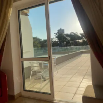 Great hotel I really enjoyed my stay, I had a top floor room with fantastic views, very clean and comfortable, fridge, safe, aircon and free toiletries, bed was really comfy. Self service breakfast was very good lots of choice, bar snacks also great. Staff very helpful and friendly. Unfortunately the weather was dreadful so couldn't use the outside facilities. The resort Monte Gordo very quiet in October and its a small purpose built resort, with good but infrequent transport links, glad I went but wont be going twice.
