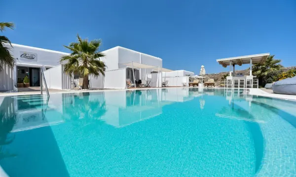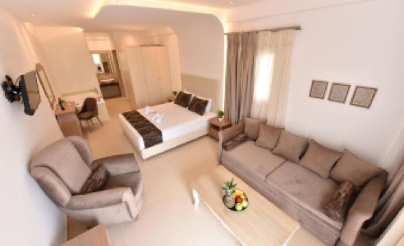 We stayed for 6 nights, typically we stay in larger hotels but thought we would try something different We weren’t disappointed, the rooms are a good size, studio style, comfortable, cleaned daily including new towels and there’s even a jacuzzi! The airport is very close by, most of the Island’s beach clubs are only a few KM and Mykonos town / Old Port less than 10 mins in a cab. The way the rooms are set up is great just like having your own little villa. They have direct access to the pool and a seating area outside to relax. There are plenty of sun beds, double day beds & loungers. The bar is open from around 9am to 10.30pm and has a good selection of top shelf drinks and home cooked food by the proprietor Katerina. A massive thank you to Alexandre who not only looked after our every need at the venue and served at the bar every day, she also organised a private cruise, numerous taxi’s, beach clubs and restaurants for us. The place has a real family feel, a delightful visit, thank you so much we will certainly be back!