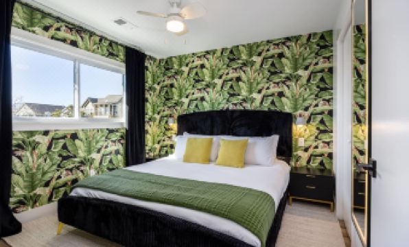 ★ Custom wallpaper and interior design with a vibrant, welcoming vibe