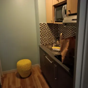 The aparthotel is a 3-minute walk from Sacré-Cœur. It has a full kitchen, a small but adequate ceramic hob, a dishwasher, a Nespresso coffee machine, a hairdryer, and an iron. It has an excellent heating system, and the windows are also good, so despite the cold weather in Paris, the room was at a comfortable temperature.