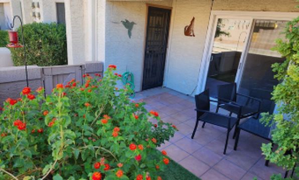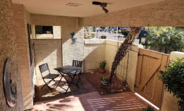 Newly remodeled, fully furnished, long term rental available, Close to many major hospitals & medical centers. Shopping, dining, gyms & coffee shops within walking distance. Located in a quiet complex. Beautiful, large pool for swimming & relaxing. Assigned carport parking. Parking lot has plenty of spaces available as well. Gated, private courtyard entrance. Double locked front doors with keyless entry. Brand new vinyl flooring throughout. Remodeled kitchen with granite countertops. Fully stocked with all utensils and appliances. Coffee / wet bar. Great room with large sectional couch & dining area. Master bedroom has queen sized bed, dresser, and nightstands for storage. Remodeled master bath has separate toilet / shower room and large walk-in closet. Guest room full size bunk beds & pull-out twin trundle, desk and large closet. Remodeled full guest bath. Full sized washer & dryer. All linens & towels supplied. Large sliding glass doors lead out to the back patio. Perfect for relaxing with your morning coffee while watching the hummingbirds or enjoying the sunset & a glass of wine. $2900 per month with $1200 refundable deposit. All utilities included. 30 day minimum required.About pets:No pets allowed.About checkOut:Check out before 11:00 AM.About children:Children allowed: ages 0-17.About customRules:No smoking and also no vaping..No loud parties..About checkIn:Check in after 4:00 PM.About smoking:Smoking is not permitted.About minBookingAge:Minimum age to rent: 21.About events:No events allowed.