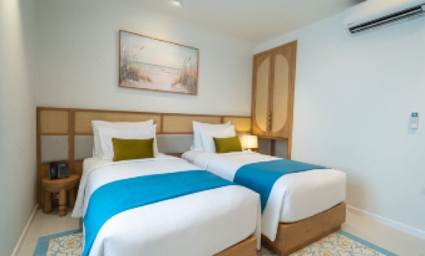 We booked four rooms for three nights, split between the second and third floors. The rooms were a bit small, but clean and tidy. Hot and cold water were available 24/7, and each room had its own air conditioning. We had a very comfortable stay for three nights. The staff were always smiling, and the owner was very patient with their explanations. Most importantly, the location is excellent. It takes less than a minute to walk to Pearl Plaza to watch the fireworks, and you can catch a local tuk-tuk right outside the door, with fares starting from 10,000 VND. Walking to Kiss Bridge and the night market takes less than 10 minutes in the evening. If you're looking for accommodation in Sunset Town, I highly recommend this place. A great choice! 👍👍👍