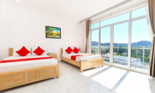 забронировали этот отель на скорую руку, отзывов на трипе не было, на других сервисах не догадались посмотреть, может это и к лучшему... потому что после оплаты невозвратного тарифа мы их все таки прочитали на букинге и это треш. типа нет горячей воды, все в плесени, стройке, мусоре и антисанитарии, что находится далеко, пешком даже до магазина не дойти, не то что бы до моря. У нас все было не так плохо, как писали. была горячая вода благодаря электрическому нагревателю, она была лишь в душе и только к лейке подключена. слив все время был забит, хотя мы даже сами пытались его почистить. под раковиной тек кран, так что ванная с туалетом у нас все время были в воде, что конечно доставляло дискомфорт в плане чистоты. в номере был холодильник, в нем был неприятный запах и морозилка особо не морозила, два вентилятора, вытяжка и кондиционер, который по сути только делал вид, что работает. стены были от сырости в плесени. за 2 недели у нас убрались один раз и то я за ними ходила 3 дня и просила убраться. кровать и шкаф деревянные, понравились. в целом просто нормально.... учитывая, что мы жили в самом дорогом номере за тысячу в сутки. там же мы снимали байк, нам дали его с одним зеркалом и без крепления для телефона, все это мы просили нам поставить всю неделю, что байк был в аренде, но там всю неделю и проездили без зеркала и крепежа для телефона. потом за ту же сумму сняли в городе байк лучше и со всеми этими удобствами. насчет локации. без байка как будто где бы вы не жили будет туго. нотрксположение отеля не самое плохое в плане того, что он почти по центру острова. мц исследовали весь остров, нам было 20 минут до юга, 15 до Донг Донга и 50 минут до севера. мы ездили на разные пляжи 15 минут сао бич и кхем. до Лонга 20 минут. персоналтв целом дружелюбный, но добиться от них чего либо было сложно ещё и в силу языкового барьера. зато они разрешили нам высушиться намного позже, так как самолет был в 18 вечера и мы хотели отдохнуть в номере
