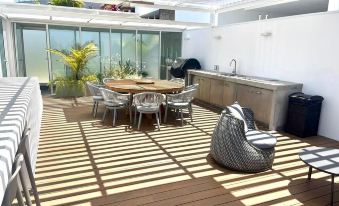With 5 bedrooms, 5 full bathrooms, elevator and two half baths, a modern kitchen, a spacious living room leading out to a gorgeous terrace offering unobstructed views of the Pacific Ocean, a private roof garden with a heated pool with even more spectacular views, a private elevator and year round access to the building's amenities - pool, gym and views, townhouse 1 is just the ticket for those looking for some rest and relax, just a few steps from the action.