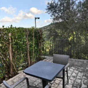 The room was very comfortable. It was in the annex, a small, independent room outside. There was a small table and chairs right at the door. Outside was the valley and the road. When I woke up in the morning, I was greeted by fresh air and the chirping of birds. The hotel breakfast was very good, fully meeting four-star standards, with a wide variety of options and delicious taste. The hotel as a whole is very unique. I personally like it very much and highly recommend it. If you go to Ragusa, you should book this hotel.