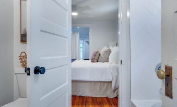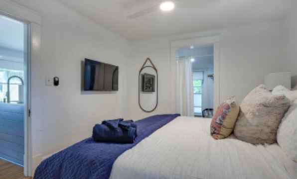Cute and compact this bungalow has it all! One floor living with open concept and there are 2 bedrooms and 1 bath. The master bedroom has a walk-in closet with dresser and laundry, king bed, tv and ceiling fan. The guest bedroom has a queen bed dresser, closet, tv and ceiling fan. The bungalow is fully updated and bright! The kitchen is stocked for entertaining with a gas stove and open concept with a comfy living room! Enjoy the porch swing and walkable neighborhood to bars, restaurants, coffee shop and bookstore along with conveniences such as target and cvs! Private parking for 3 cars in the back of the house, pet friendly with a $150 pet fee up to 2 pets and free street parking.About pets:Pets allowed: limit 2 total.About checkOut:Check out before 11:00 AM.About children:Children allowed: ages 0-17.About customRules:When bringing a pet you need to add them to your reservation. There is a question that says are you bringing pets slide the bar over to add them..About checkIn:Check in after 4:00 PM.About smoking:Smoking is not permitted.About minBookingAge:Minimum age to rent: 25.About events:No events allowed.