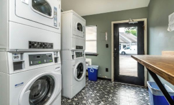 Paid Washer and Dryer in apartment building on left of entrance