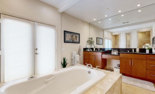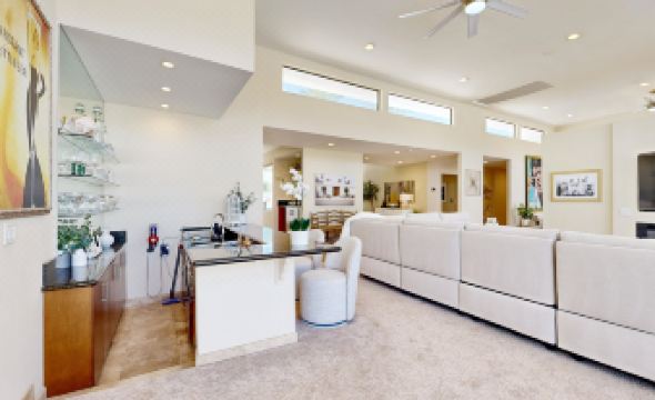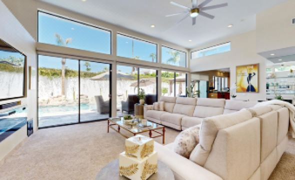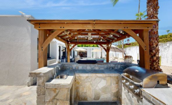 This spectacular designer home has been newly-remodeled, upgraded, and furnished with extraordinary care and attention to every detail. Experience the desert lifestyle at this Rancho Mirage getaway offering over 4,000 sq. ft. of luxury with an open floor plan and plenty of living and entertainment space for your group. Inside the Tamarisk Villa, you'll find a spectacular chef's dream kitchen with stainless steel appliances and an island with counter seating. Enjoy the fruits of your culinary labors at the dining table with seating for eight, and then gather for movie nights in the warm and inviting living area complete with high ceilings, a gas fireplace, a 65' flatscreen TV, and a well-equipped wet bar (bartender not included). Outside, augment your home-cooked menus with the gas grill and outdoor kitchen and slip into your private, heated pool