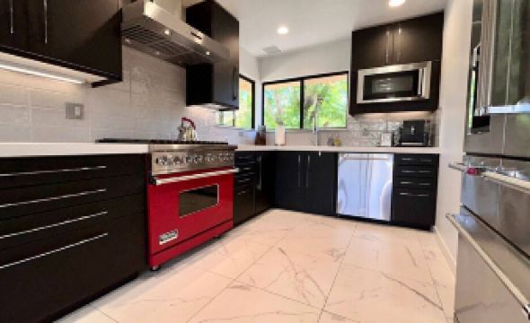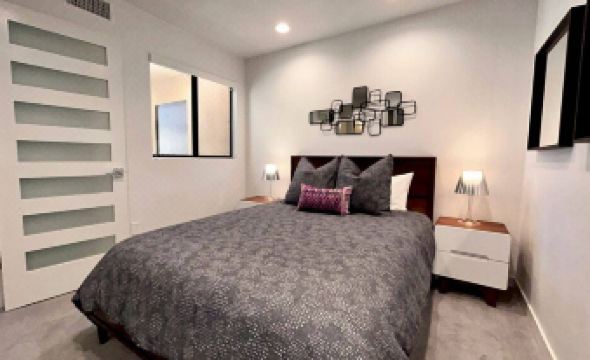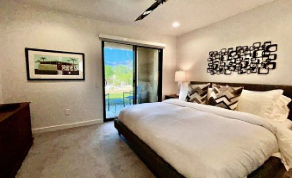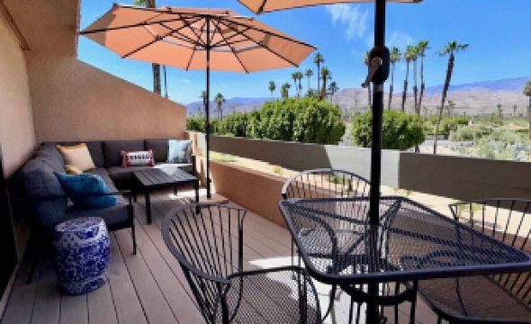 Escape to "Mountain View Townhome", the epitome of desert luxury in this stunning fully remodeled mid-century modern oasis nestled in prestigious Mission Hills Country Club in Rancho Mirage. Tastefully appointed three bedroom, three and a half bath, all ensuite ensuring privacy for you and your guests. Indulge in the perfect blend of elegance and recreation with a state-of-the-art family room, gourmet kitchen and furnished terraces to take in the magnificent views of the San Jacinto mountain range. Key Features: three en-suite bedrooms, a powder room off the living and dining area, two balconies and two private patios, all with spectacular mountain views. Inside the secure gated community of Mission Hills Country Club with a two car garage attached to the property. Privacy and beauty surround you. Completely renovated interiors: step into a world where modern luxury meets desert chic, with interiors that have been updated top to bottom, featuring high-end finishes, state-of-the-art technology and bespoke design elements. Large open plan living room with large flat screen tv, stunning gas fireplace for those chilly desert nights, high ceilings and all new modern and iconic vintage furnishings with plenty of comfortable seating. Dive into the large lap pool just a minutes away, relax in the jacuzzi or lounge poolside soaking in the California sun, with breathtaking mountain views as your backdrop. Gourmet Kitchen: Catering to culinary enthusiasts, the kitchen is equipped with premium Viking appliances, fully stocked with a plethora of all new high end kitchen tools and utensils, Crate & Barrel dishes and barware and plenty of space for crafting delicious meals and entertaining. Sit down and dine at the iconic oval mid-century modern marble top dining table for 6. Two additional chairs are provided. Prime Location: Located in the heart of Rancho Mirage, you're minutes away from upscale shopping, fine dining, and outdoor adventures. Whether you’re seeking a peaceful getaway to rejuvenate, a remote work paradise, or an entertainment-filled retreat, this vacation rental promises an unparalleled experience. The blend of privacy, luxury, comfort and scenic splendor make it a top choice for discerning travelers.About pets:Pets allowed: dogs and cats less than 50 lbs per pet (limit 2 pets total).About checkOut:Check out before 11:00 AM.About children:Children allowed: ages 0-17.About checkIn:Check in after 4:00 PM.About smoking:Smoking is not permitted.About minBookingAge:Minimum age to rent: 21.About events:No events allowed.