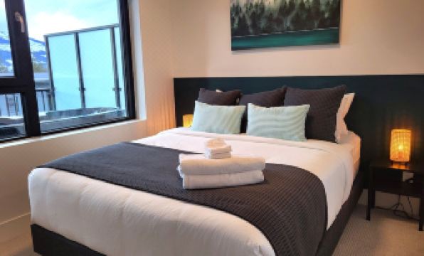 Relaxing mountain views and accommodation grade queen-sized bed with closet space.